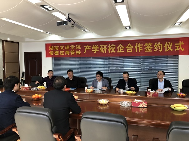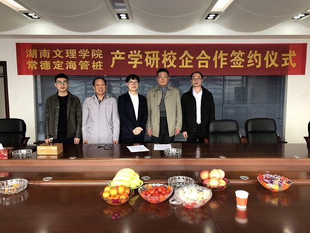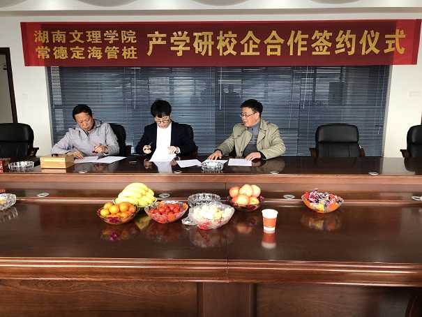 2020年3月,常德定海管樁有限公司與湖南文理學(xué)院簽訂產(chǎn)學(xué)研合作協(xié)議。總經(jīng)理陳吉果與學(xué)院領(lǐng)導(dǎo)現(xiàn)場(chǎng)簽約并授牌。